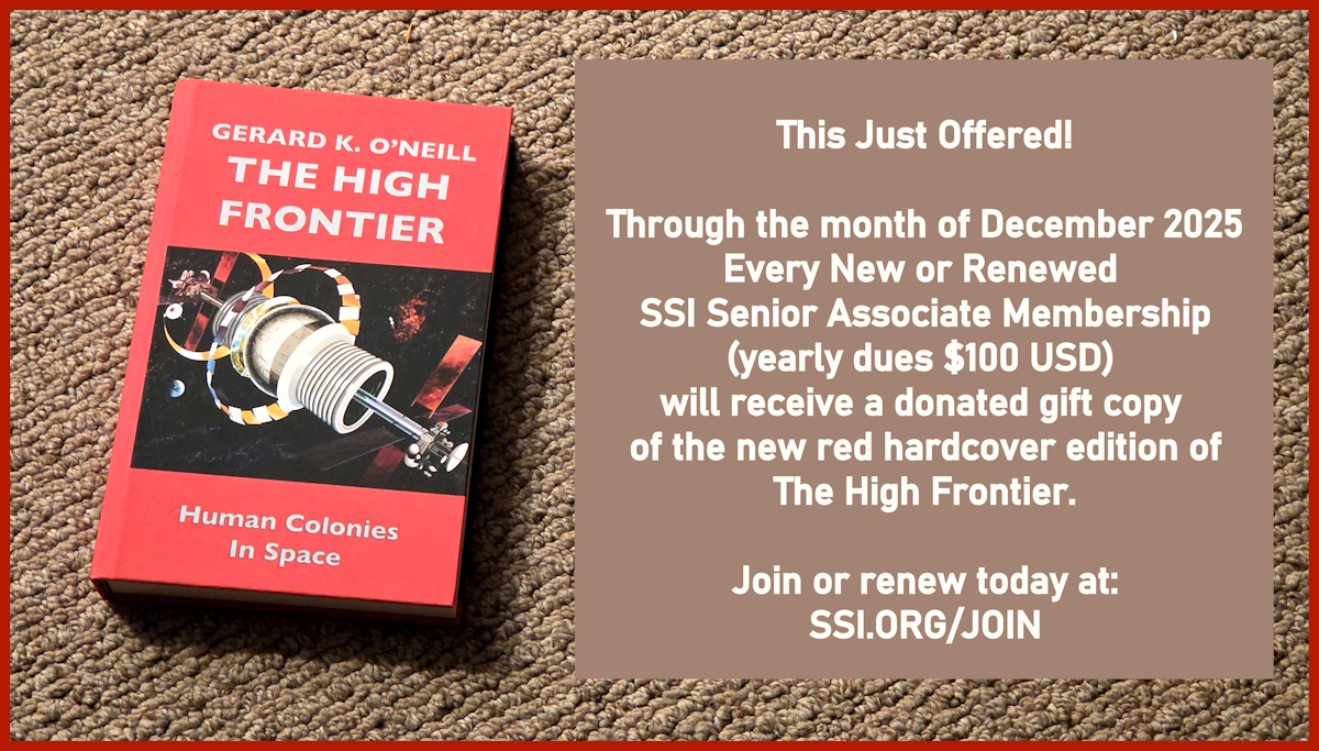 To our Friends, Associates, to all of our SSI Family; From Co-founder Tasha O’Neill and President Robin Snelson and the all-volunteer staff of the Space Studies Institute, Happy Holidays, Thank you and Enjoy.
