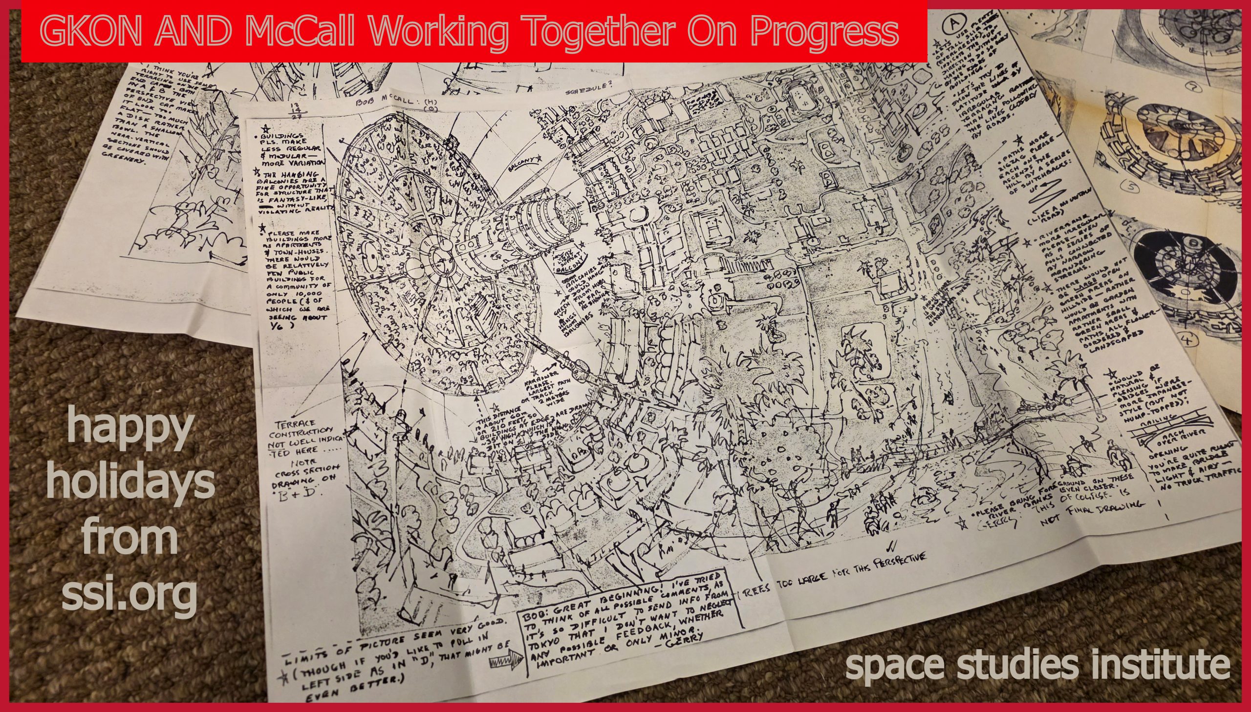 Gerard O’Neill and beyond-legendary futurism artist Bob McCall in the middle of a back and forth to make more of THE imaging of the SSI goals.